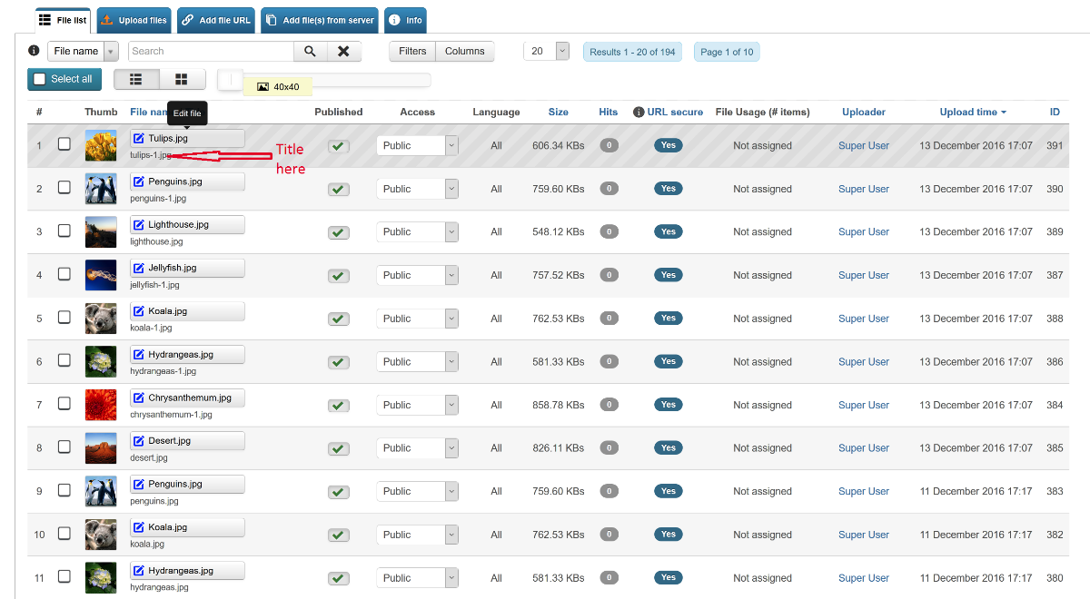 it is supposed to be shown inside the filename column, but only if it is different than the filename
