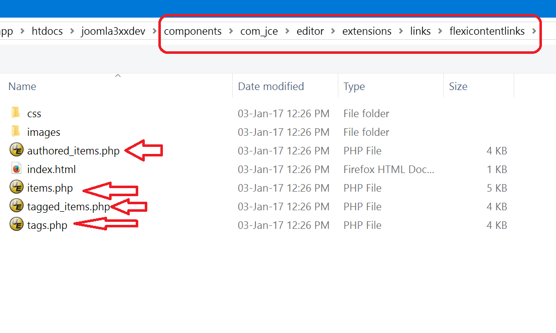 So not having those files there got me thinking. I uninstalled JCE and reinstalled it. Then reinstalled (from package upload) Flexicontent. Went into the JCE editor and under their plugin manager,> links was now a section for flexiconcent. I set the two option (items and tags) to yes, saved and tested...and resolved! (see attached)