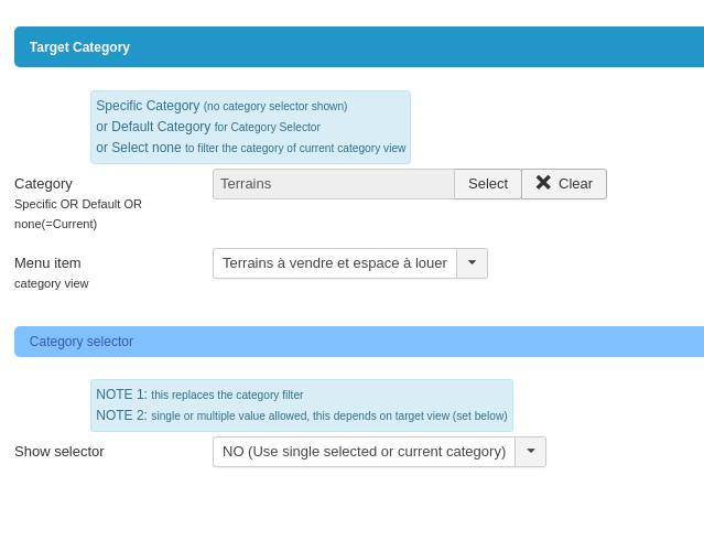 I have a Content Lists Filtering module to filter through a category called Terrains and selected the page that is a listing of category Terrains as the Menu Item.