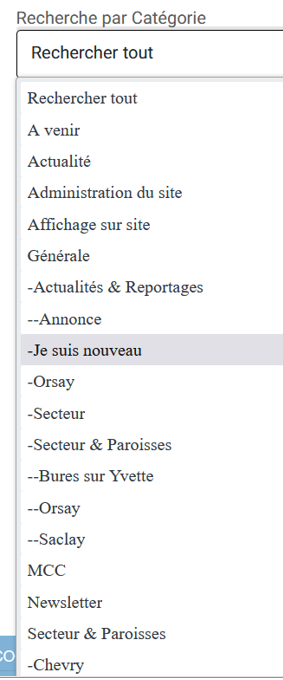 Et voici la liste des catégories accessibles dans les paramètres de recherche :