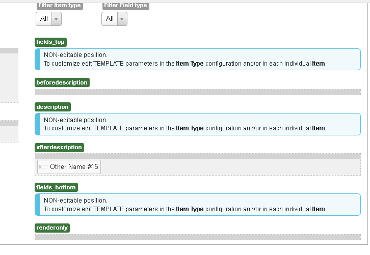 all the Custom (non-Core) fields which i have created is listed one by one even when i have not added this feilds to any possition in templa,
