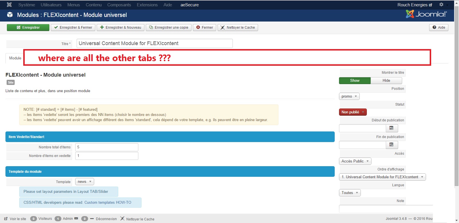 Since update from 3.0.8 to 3.0.13, all the tabs of the Universal content module are GONE :(