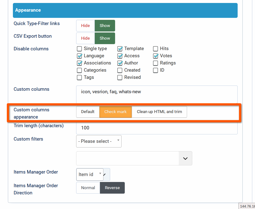 - adding options to manage display in flexicontent global configuration > tab backend manager > items manager  :  github.com/FLEXIcontent/flexicontent-cck...ter/admin/config.xml
