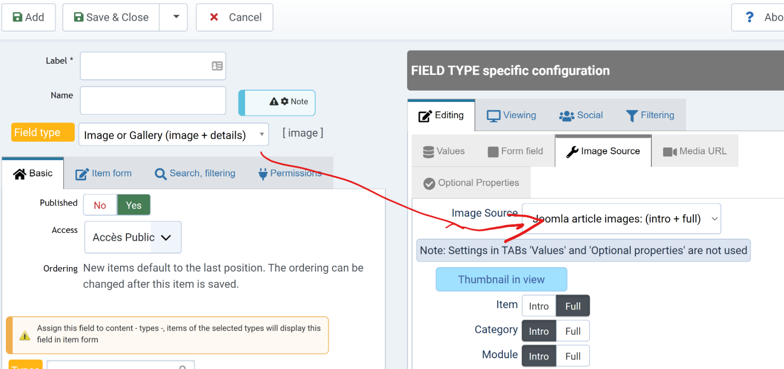 Il faut créer un champ flexicontent image et utiliser l'option pour mapper les champs image de joomla dessus