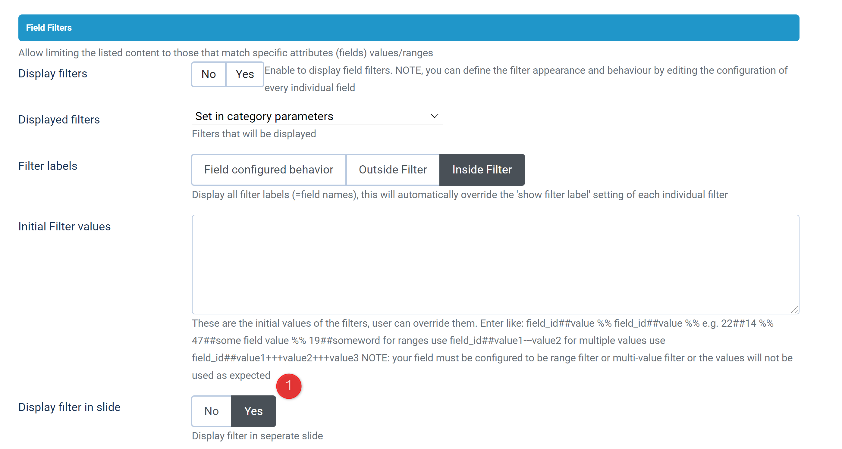 Now you can select to display filter in a slider, perfect to display a compact search and filter zone. We use Joomla component for better display according to used template